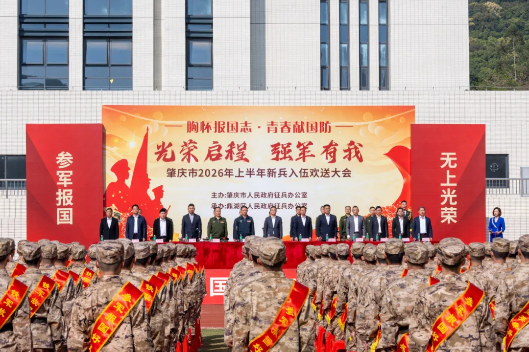 3月14日上午,肇庆市2026年上半年新兵入伍欢送仪式在肇庆医学院新区校区隆重举行。市委书记、市人大常委会主任张爱军,市委副书记、市长许晓雄,肇庆军分区主要领导纪春林,副市长谢桂坤,肇庆军分区领导廉树合等市、县(市、区)各级军地领导,以及肇庆医学院党委书记邢晓辉,党委副书记、校长周麟出席仪式,共同为即将奔赴军营的新兵壮行,现场洋溢着热血昂扬、拥军送别的浓厚氛围。★★★仪式在精彩纷呈的暖场节目中拉开帷...