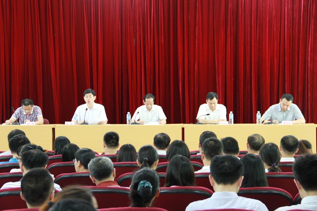 2015年6月17日,肇庆医学高等专科学校“三严三实”专题教育工作会议在端州校区学术厅召开。学校领导班子成员、各处室、系部正副职以上干部及全体在职中共党员共180多人参加了本次会议。会议由学校党委副书记陈彤主持,他代表学校党委对开展全校“三严三实”专题教育工作进行了部署,提出了三点工作要求:一是要把握专题教育的总体要求,按照中央、省委和市委关于开展专题教育的部署要求以及我校《实施意见》,从严从实推进专题教育;二是要明确专题教育的方法措施,将专题教育融入党员干部经常性的学习教育,把握常态化教育特点,注重经常性教育的要求,不能用搞活动的办法来搞专题教育。要按照中央明确的专题党课、专题学习研讨、专题民主生活会、整改落实和立规执纪等4个关键动作,以及省委明确的专题轮训、体验观摩学习等2个关键动作的要求,结合我校实际,从严从实落实各个“规定动作”;三是要加强对专题教育的组织领导,各党(总支)支部要把开展专题教育作为重大政治任务。树立高度的政治责任感和强烈的大局意识,切实加强领导,统筹推进落实,强化督促检查,注重舆论宣传,确保取得实效。要根据学校《实施意见》抓好落实。
