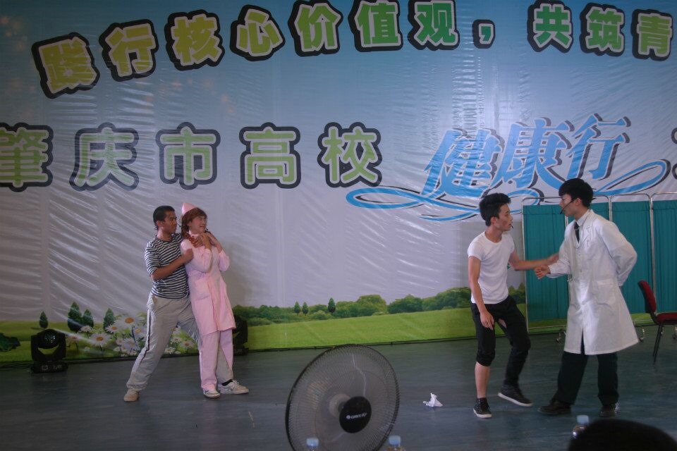 4月19日下午,由肇庆市卫计局和疾控中心主办的“践行核心价值观 共筑青春中国梦——肇庆市‘高校健康行’文艺节目汇演”在肇庆医专鼎湖校区成功举行。广东省健康教育中心吴孟雄副主任、市卫生和计划生育局梁卫雄书记、王晓明副局长、市疾病预防控制中心李健艺主任以及市关工委、市文明办、市文广新局、团市委、市妇联、市教育局和肇庆市五大高校有关领导嘉宾出席了汇演活动。
