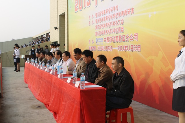 11月22日至23日,肇庆医学高等专科学校2013年田径运动会在鼎湖校区举行。22日上午8时,学校田径运动会在鼎湖校区运动场上隆重举行,学校党委书记孔德扬、副校长张少华、党委副书记陈彤、副校长张明、副校长陈志超、副校长李庆奇以及部分中层管理干部出席了开幕仪式。开幕式由学校办公室主任陈兆才主持,校党委书记孔德扬致开幕辞,孔书记代表本届运动会组委会对运动会的开幕表示热烈祝贺,希望在比赛中裁判员公平、公正、公开地作出裁判,运动员发扬“团结、友谊、拼搏、创新”的体育精神参加比赛。