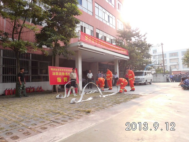 肇庆医学高等专科学校北校区举行2013级中职新生消防逃生演习