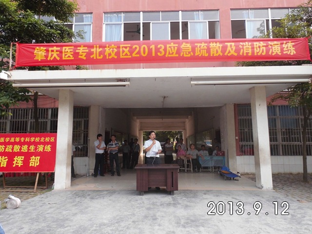 为了增强我校学生的安全意识,提高新生安全防范、自救、逃生的应急反应能力,提高学校应对突发事件的组织协调和应急处理能力,9月12日下午16:00,肇庆医学高等专科学校北校区举行了2013级中职新生消防逃生演习。学校张明副校长(本次逃生演习现场总指挥)、学生处刘其礼处长、后勤保卫处刑子伟处长等领导参与了本次演习。