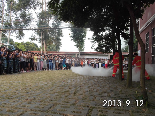 通过演练,提高了2013级本校区新生的消防意识和应急反应能力,普及了消防自救知识,同学积极参与并收到了预期效果。