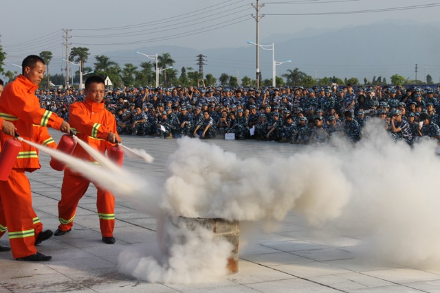 下午四点十五分,随着火警警报信号响起,演练正式开始。同学们按指定的路线分别从教学楼、宿舍、操场、食堂等现场撤离,老师、辅导员现场指挥引导,带领本班学生有序地撤离到操场集中,整个消防演练近4000人参加,撤离过程用时3分30秒,做到了快速、安全、有序。随后,消防专业人员向师生们展示如何使用灭火器,如何进行灭火,讲述如何有效地逃生自救,并让同学们现场操作使用灭火器。学校的一名学生在演练过后说“今天参加了演习之后,我明白如何保护进行逃生自救,保护自己的生命安全”。