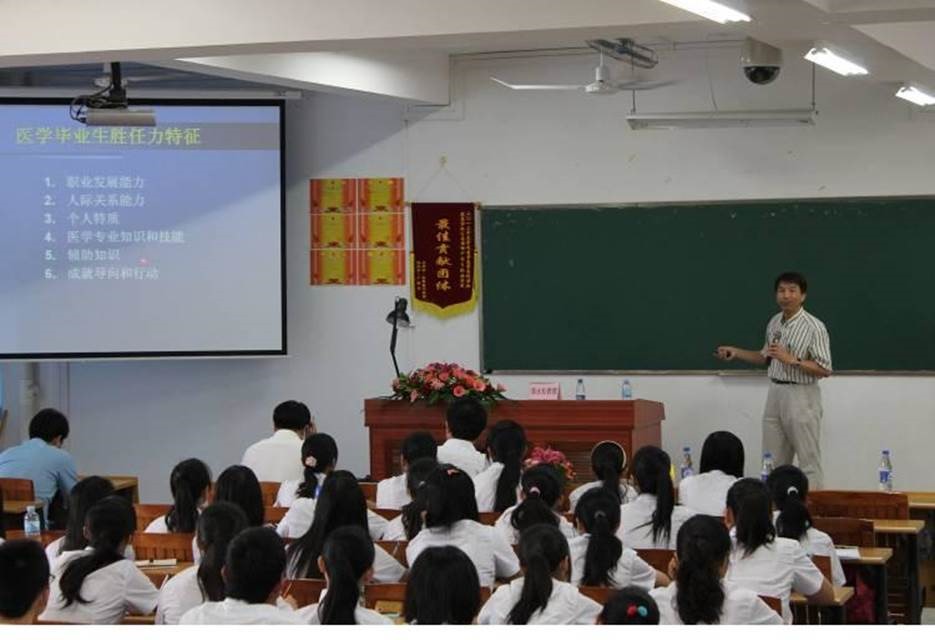 台湾中山医学大学颜启华博士讲述了《关于医病相关的处理》讲座,讲座中颜博士向师生们强调“先做人再学做事”的理念,通过案例分析了影响医患沟通的因素、病人的一般心理反应和心理需要,并介绍了医患沟通的技巧、沟通的方式方法。