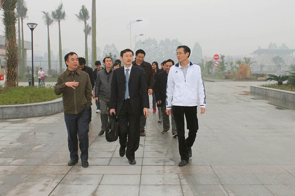 广东工程职业技术学院学生工作处张华处长(中)一行、在鼎湖校区综合办刘其礼主任(左一)、副主任何志超主任(右一)陪同下参观鼎湖校区