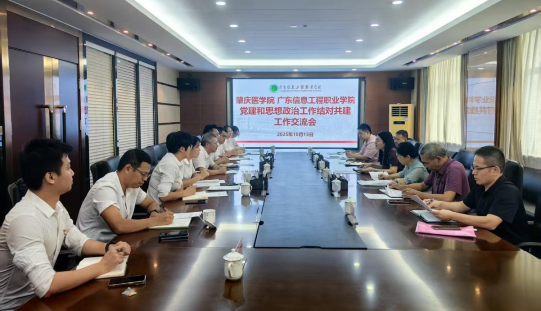 在随后召开的工作交流会上,徐定平书记详细介绍了学院的发展近况与未来规划。邹云容副书记表示,肇庆医学院将充分发挥自身优势,在党建与思想政治工作上给予全力支持,助力广东信息工程职业学院提升育人水平。双方围绕建立长效合作机制等议题进行了务实探讨,并在多个方面达成重要共识。