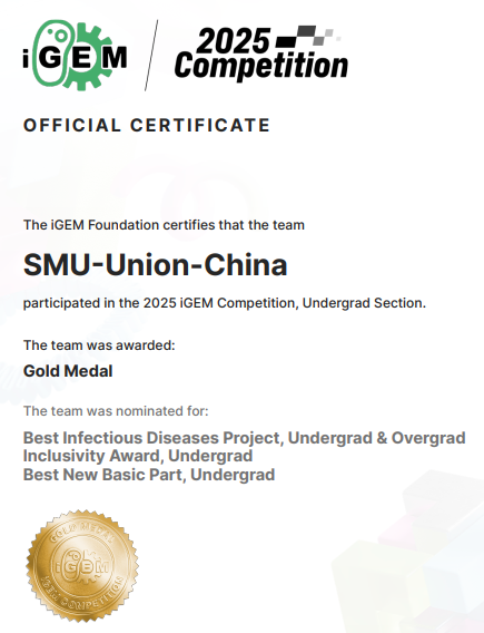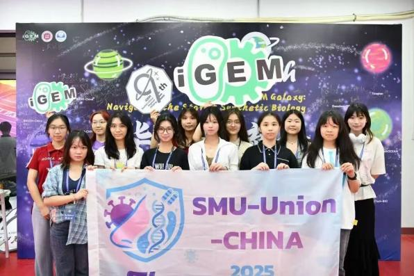为备战本届赛事,在南方医科大学帮扶队的牵头下,组建了跨校跨专业联合团队——SMU-Union-China,汇聚来自肇庆医学院等6所高校的30名优秀学子,专业背景覆盖临床医学、预防医学、基础医学、药学、人工智能技术应用、移动开发、软件技术等多个领域。自2025年1月启动以来,团队历经近十个月的持续攻坚,在实验设计、建模优化、社会实践(human practice)、网站(Wiki)搭建、美工优化及全英文答辩准备等环节中,克服跨校协作与专业沟通的诸多挑战,最终凭借扎实的技术创新、突出的实践价值与流畅的全英文展示,赢得国际评委的高度认可。