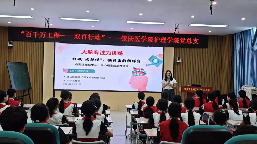 为充分发挥护理专业优势,推动生命健康教育深入中小学课堂,2026年3月,肇庆医学院护理学院接连走进肇庆市端州中学与鼎湖区桂城中心小学,分别开展急救技能培训与心理健康专题活动,用专业力量为青少年成长护航,在“校地协同”中书写高校的社会责任与医者温度。