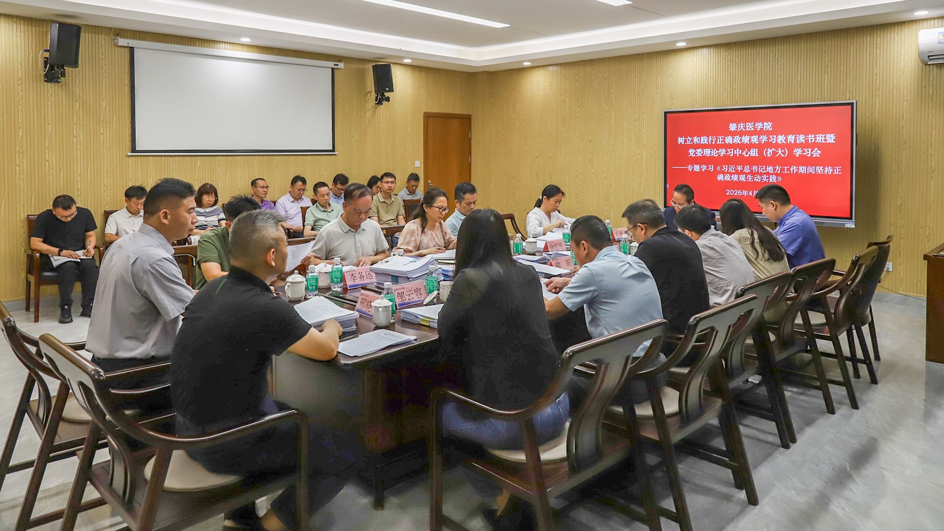 4月23日,肇庆医学院树立和践行正确政绩观学习教育读书班暨理论学习中心组(扩大)学习会举行。学校党委书记邢晓辉主持会议并讲话,党政班子成员及各职能部门负责人参加学习。