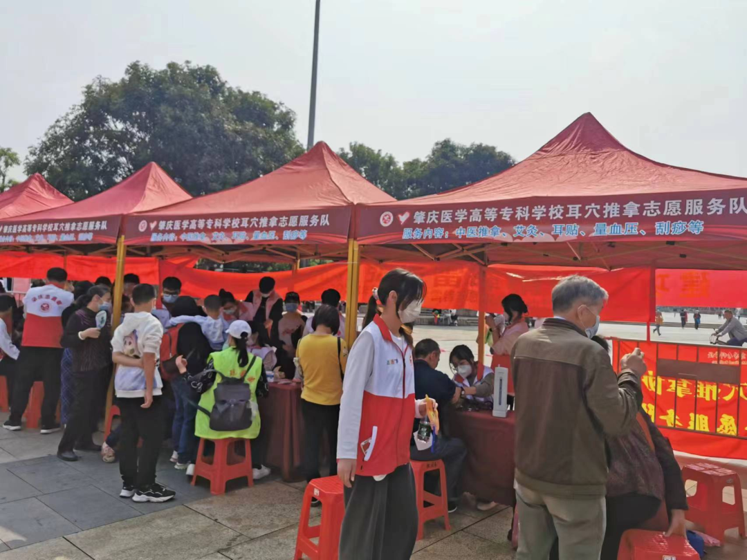 3月4日下午,我校光暖志愿服务队、耳穴推拿志愿服务队师生志愿者积极参与“弘扬雷锋精神 建功志愿肇庆”——肇庆市学雷锋志愿服务便民集市暨全市新时代文明实践日活动,走向广场、园区,开展便民活动服务社会群众。